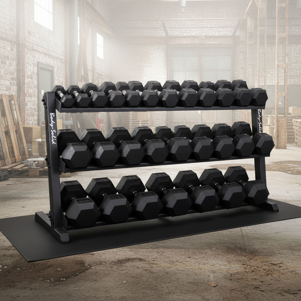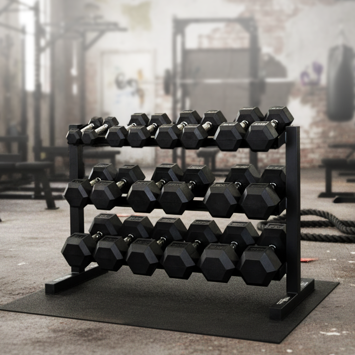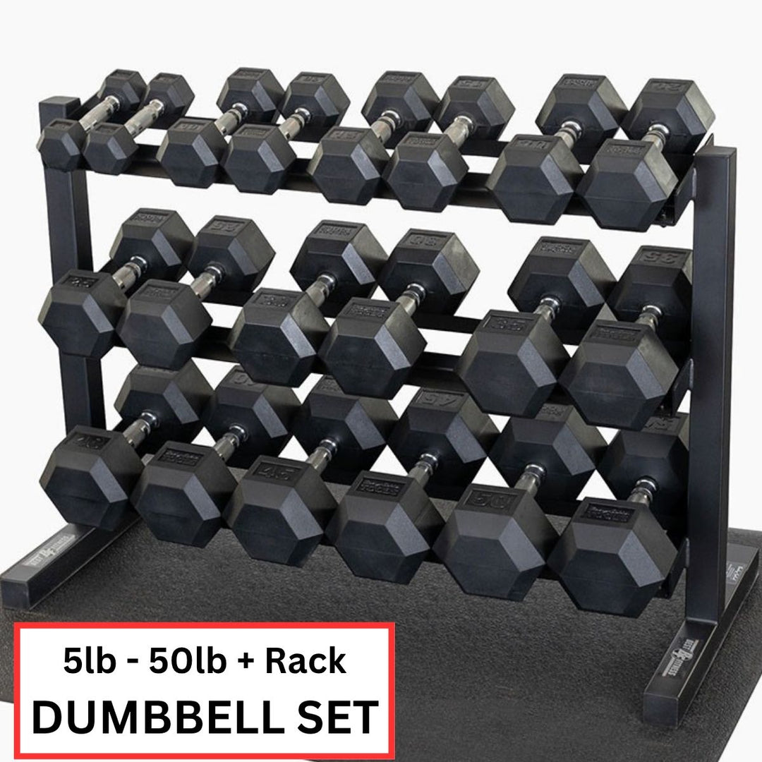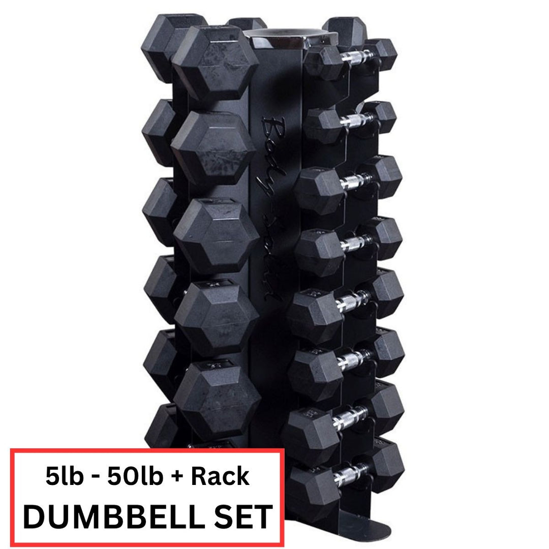 Dumbbell Package 5lb-50lb Rubber Hex + Vertical Rack