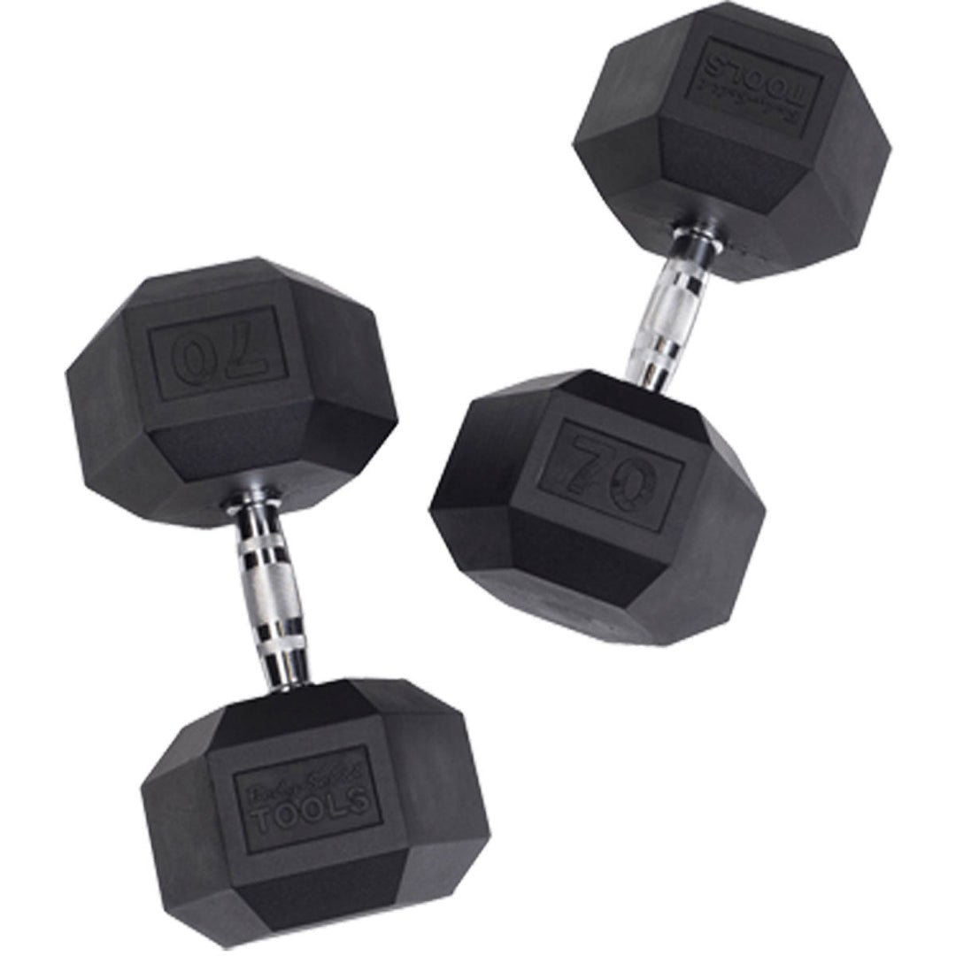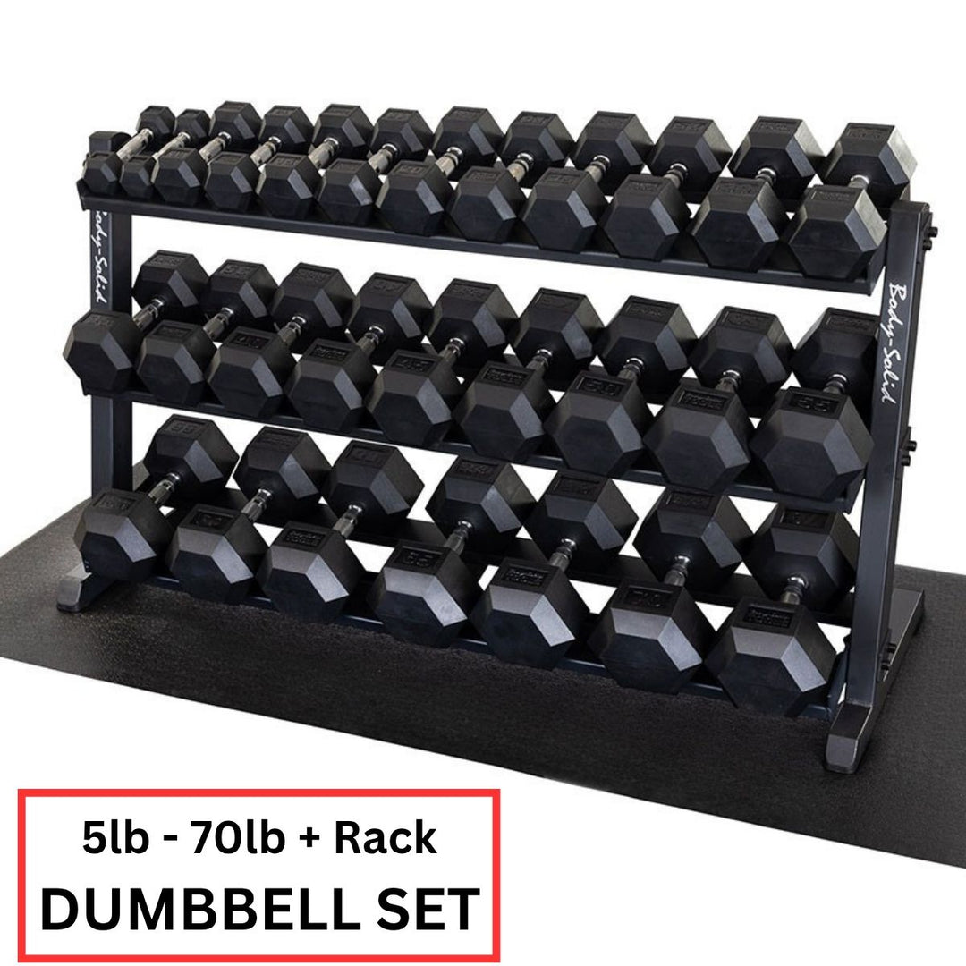 Dumbbell Package 5lb-70lb Rubber Hex + Horizontal Rack