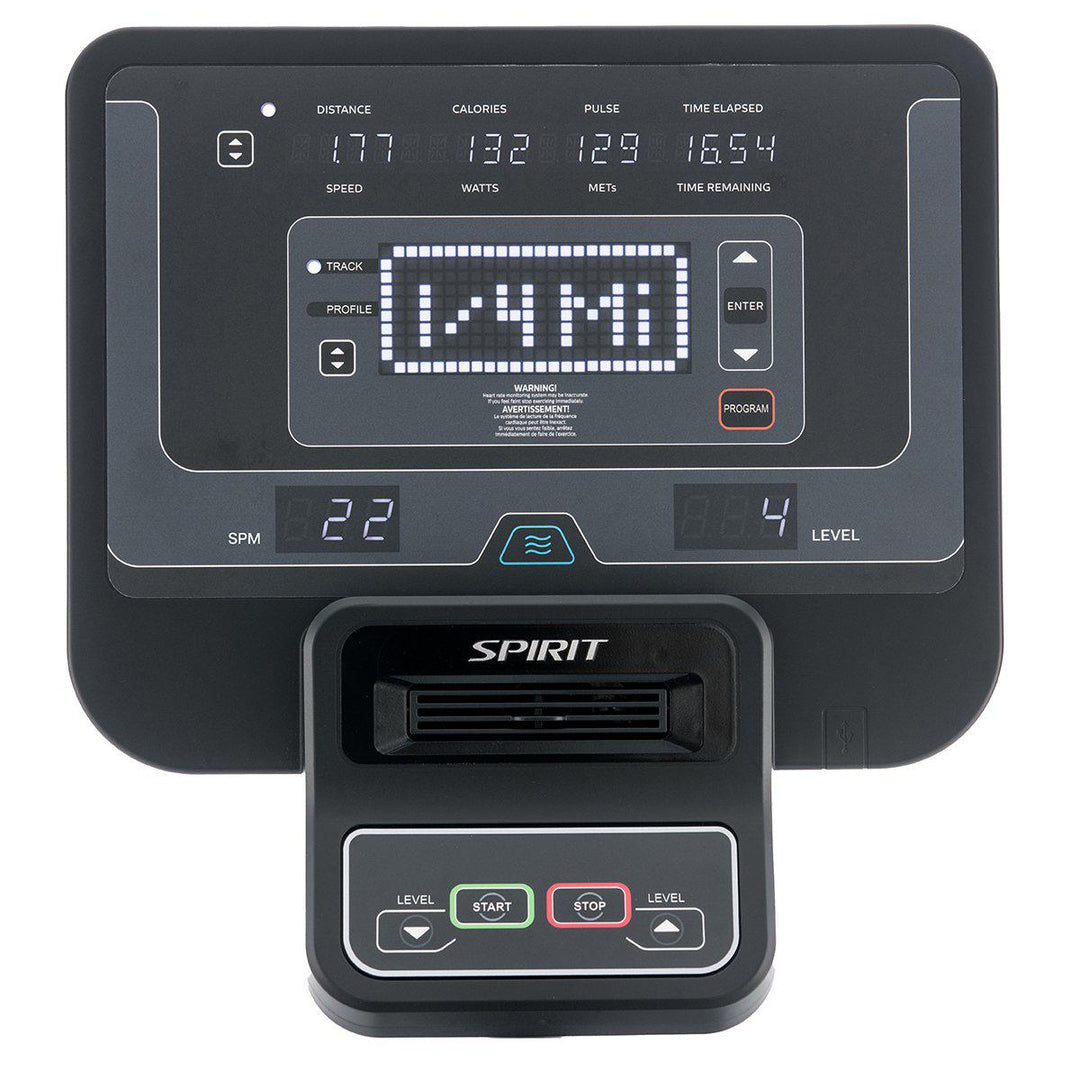 The electronics are designed to provide intuitive operation. The console features a large easy-to-read display with a variety of program options for users of all fitness levels, an integrated fan to keep clients cool, and a USB charging port for keeping their device charged. The convenient seat-mounted hand pulse grip sensors provide heart rate monitoring on demand.