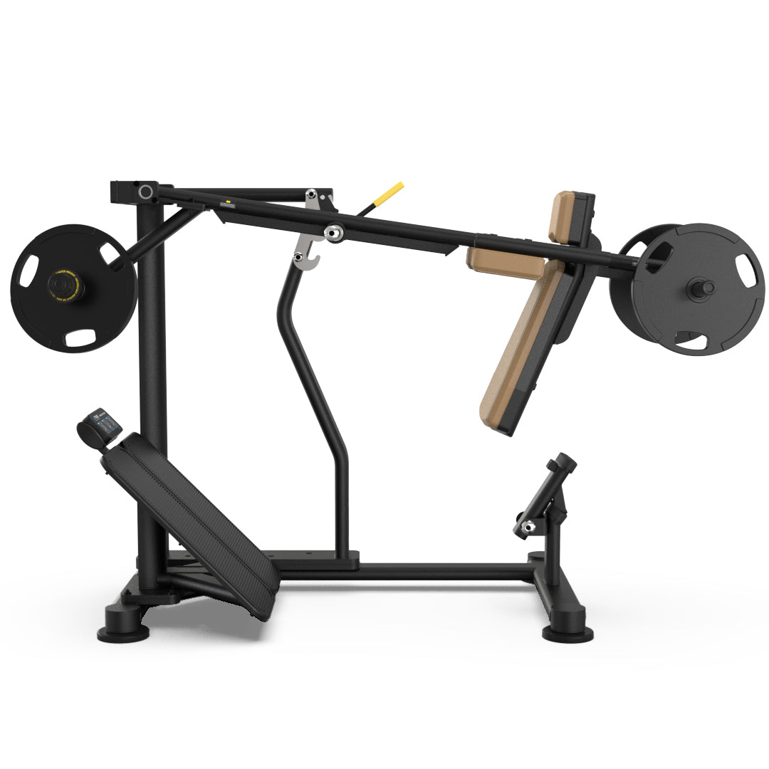 The Palladium Series Plate Loaded PLS-1400 Pendulum Squat features a unique movement pattern that allows for a full range of motion while maintaining proper knee-to-ankle alignment. Its oversized, non-skid foot platform supports multiple foot positions, while a dual safety catch system enhances security throughout the lift.