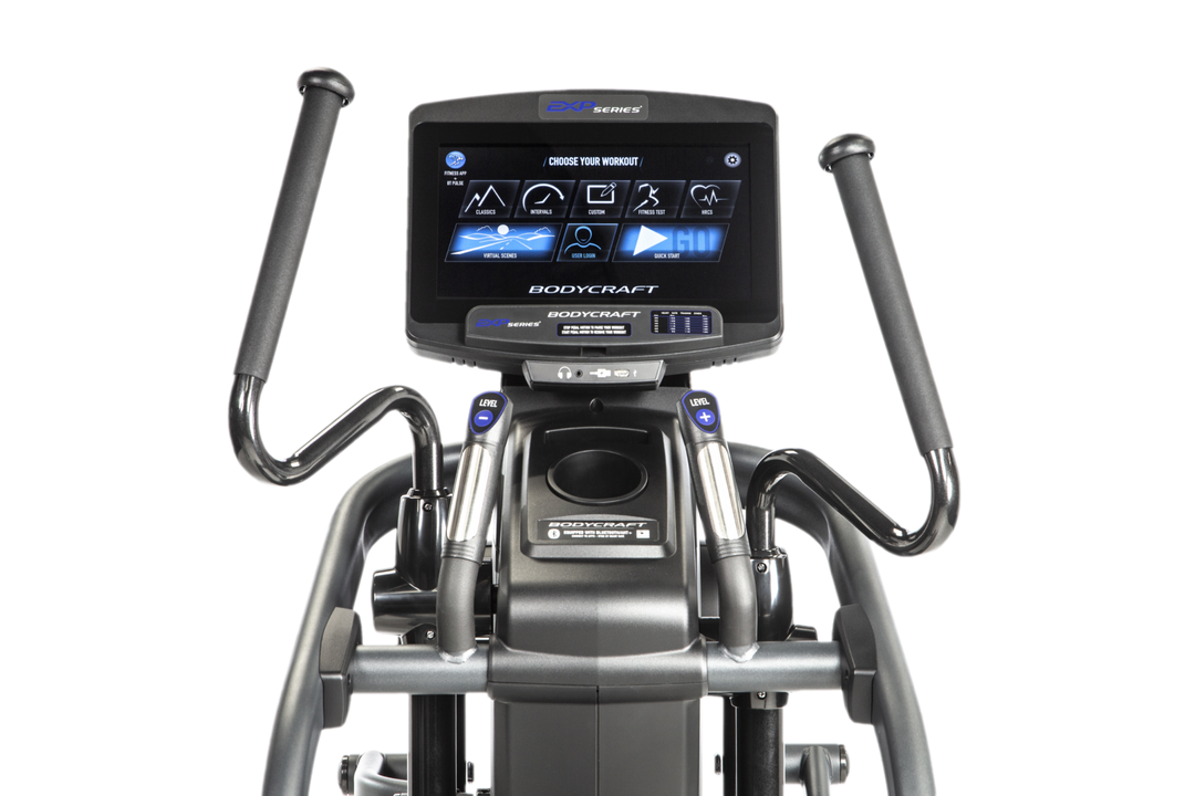 Experience the pinnacle of elliptical design with the BODYCRAFT E1000 Elliptical, offering a smooth, virtually silent, and satisfying workout. Its innovative Suspended Design eliminates the need for wheels and tracks, reducing noise and maintenance. The ergonomic styling ensures users maintain a natural, upright position, while the compact design features an easy access low step-up height. Enjoy a cushioned, comfortable experience with oversized Smooth Flow Comfort Pads. Paired with the fully interchangeable EXP Series Consoles, the E1000 Elliptical provides a variety of workouts to target different muscle groups while maintaining natural movement. Choose between the 16” touchscreen console or the 9” LCD console for a customized workout experience. The whisper-quiet Pure Precision Commercial Generator Brake and patented Natural Stride Motion deliver the smoothest, most comfortable elliptical motion available. Additional features include a 23” stride length, dual-action multi-grip handlebars with resistance controls, and the BODYCRAFT CONNECT Module for connecting apps on your smartphone or tablet. The BODYCRAFT E1000 Elliptical is designed to provide any user with a premium, versatile, and enjoyable workout experience.