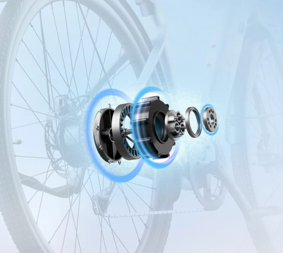 The customized motor and torque sensor work together to maximize the e-bike’s power efficiency, providing an impressive 80-mile range on a single charge. Paired with the Shimano 8-speed drivetrain, it adapts seamlessly to various terrains and speeds, while conserving battery for extended rides.
