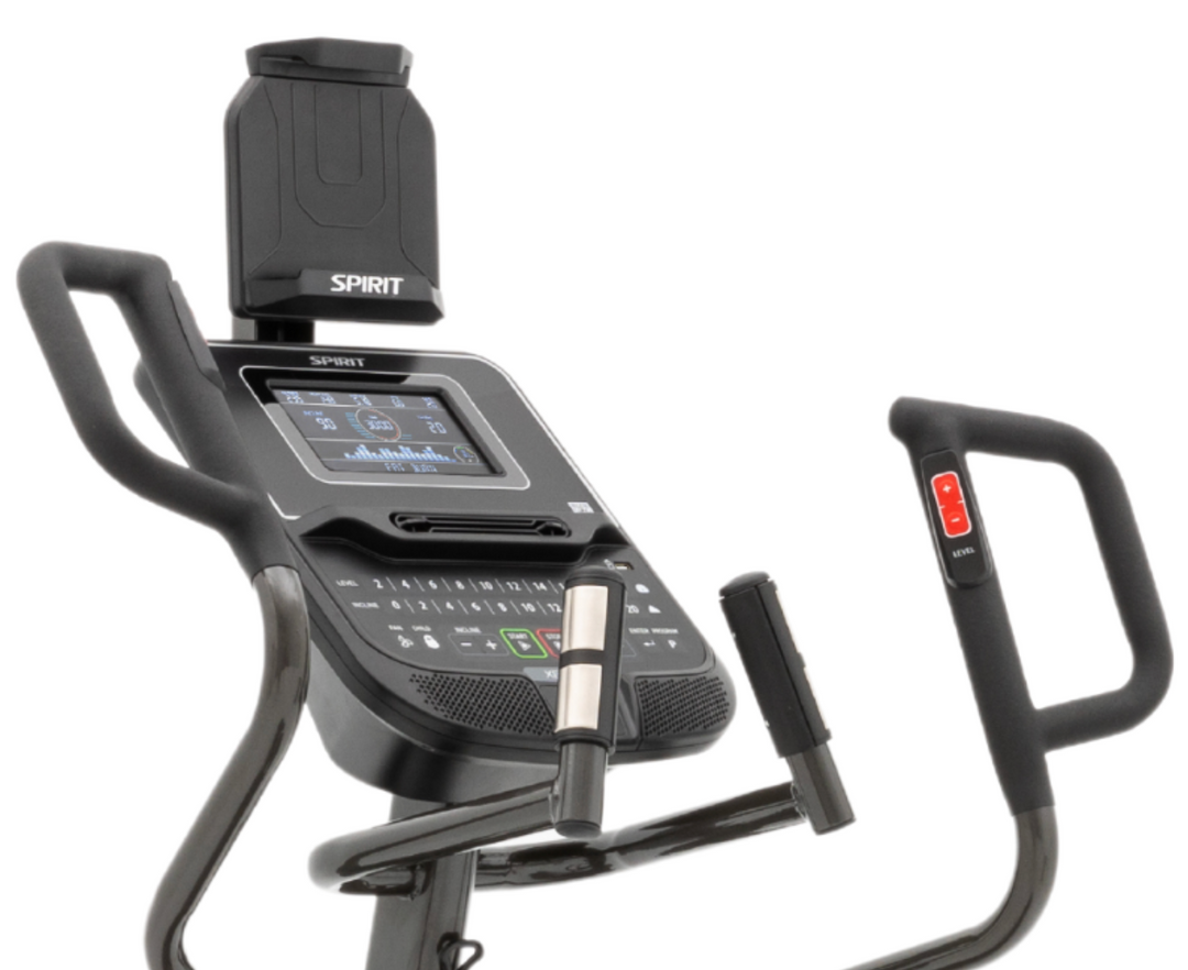 Seamlessly connect via Bluetooth to the SPIRIT+ app for detailed progress tracking and on-demand workout classes or sync with a wireless heart rate monitor (Bluetooth or 5KHz, available separately) for enhanced performance insights. And with built-in Bluetooth speakers, enjoy your favorite tunes or podcasts as you push through your workout. Not to mention, the newly integrated removable swivel-tilt tablet holder keeps your device in sight for entertainment or virtual fitness classes without obstructing essential console data.