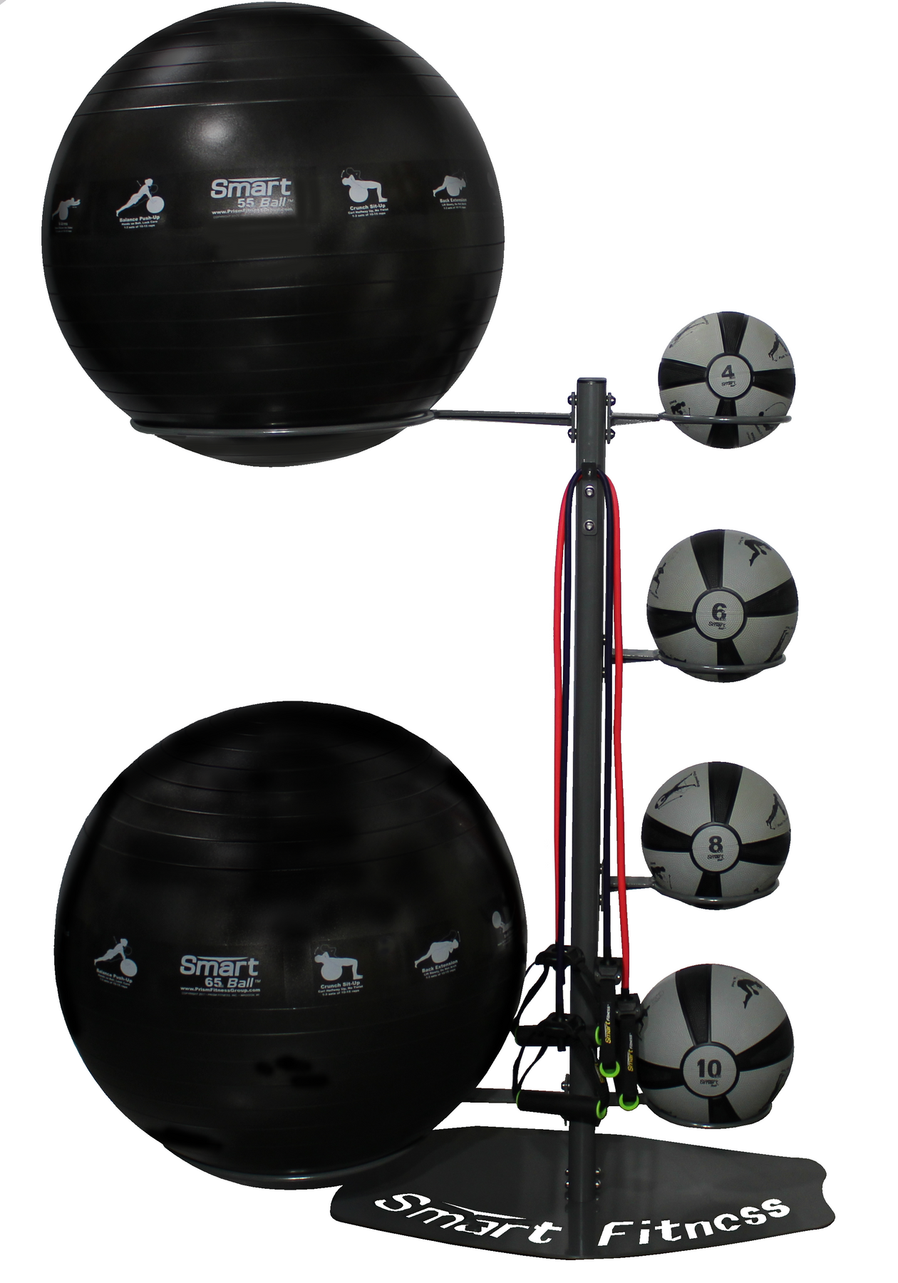 The Smart Economy Self-Guided Commercial Package is a convenient all-in-one medicine ball and stability ball rack. It is especially good for those who have limited storage space. You can easily store all your medicine balls and stability balls in this unit. The tower also features a hook to hang extra fitness cables, bands, and jump ropes.