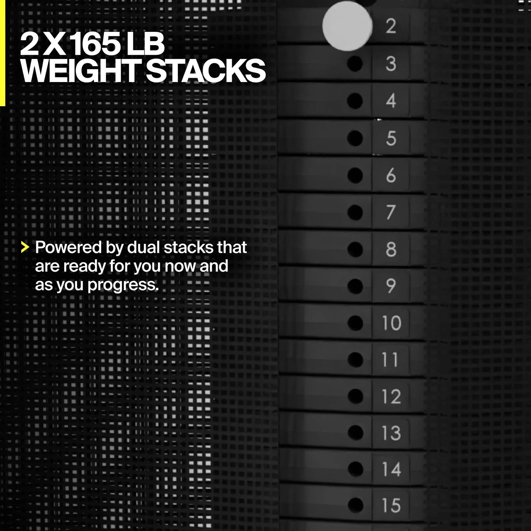 - Two 165 lb weight stacks (330 lb total)