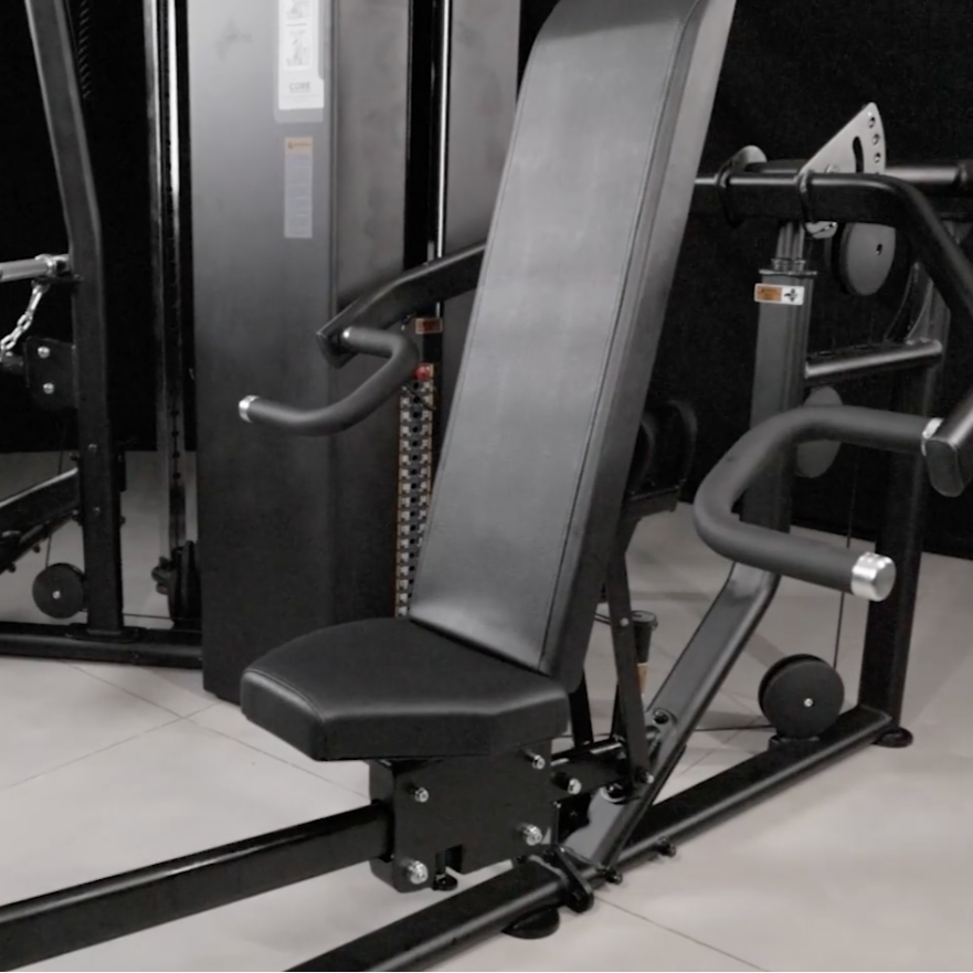 - Features multiple position chest/shoulder press, lat pulldown/low row, and leg extension/prone leg curl.